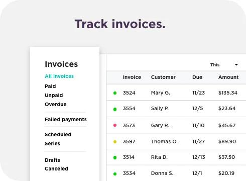 Send invoices in a click through email, text, or via online payment links
